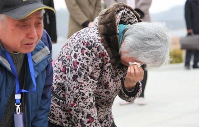(圖為終于找到親人的烈屬淚灑當(dāng)場。)