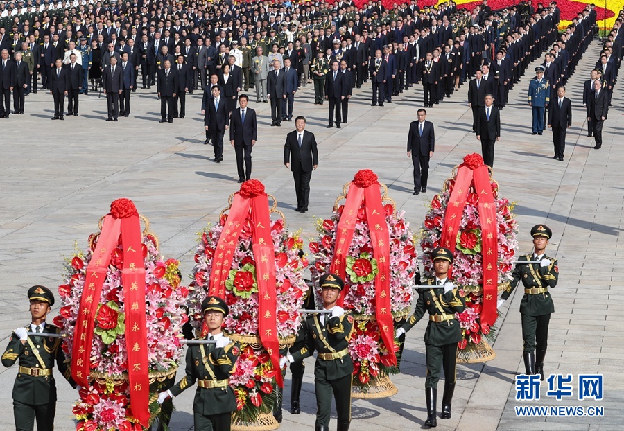 9月30日上午,黨和國家領(lǐng)導(dǎo)人習(xí)近平、李克強(qiáng)、栗戰(zhàn)書、汪洋、王滬寧、趙樂際、韓正、王岐山等來到北京天安門廣場,出席烈士紀(jì)念日向人民英雄敬獻(xiàn)花籃儀式。 新華社記者 謝環(huán)馳 攝