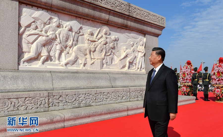 9月30日上午,黨和國家領(lǐng)導(dǎo)人習(xí)近平、李克強(qiáng)、栗戰(zhàn)書、汪洋、王滬寧、趙樂際、韓正、王岐山等來到北京天安門廣場,出席烈士紀(jì)念日向人民英雄敬獻(xiàn)花籃儀式。這是習(xí)近平瞻仰人民英雄紀(jì)念碑。 新華社記者 岳月偉 攝