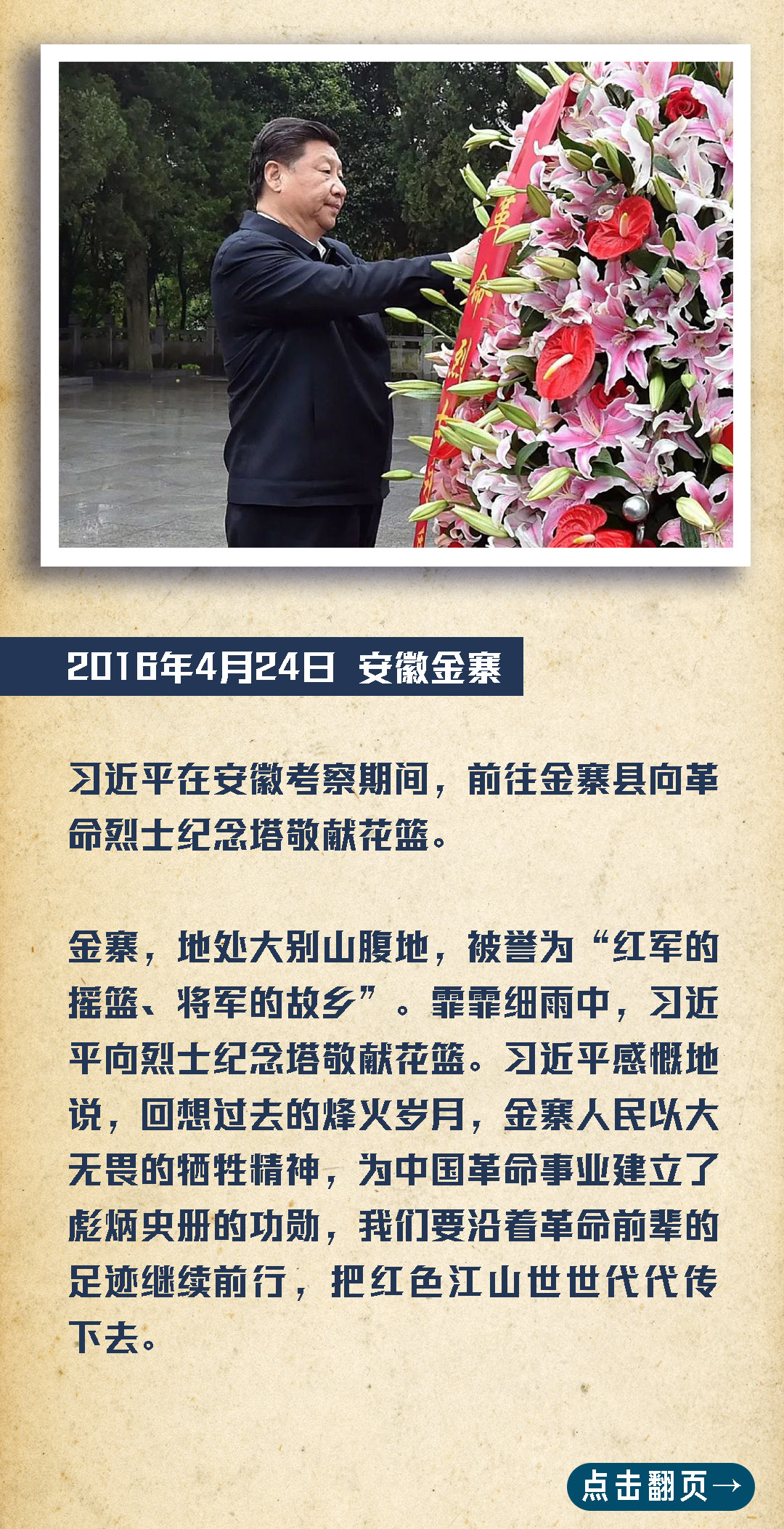 黨的十八大以來(lái),習(xí)近平總書(shū)記踏尋英雄、緬懷英烈的足跡遍布大江南北。在赴地方考察調(diào)研期間,他多次前往當(dāng)?shù)亓沂苛陥@敬獻(xiàn)花籃,緬懷英雄先烈,謳歌民族英雄,用自己的言行為全黨全軍全國(guó)各族人民作出表率。[詳細(xì)]