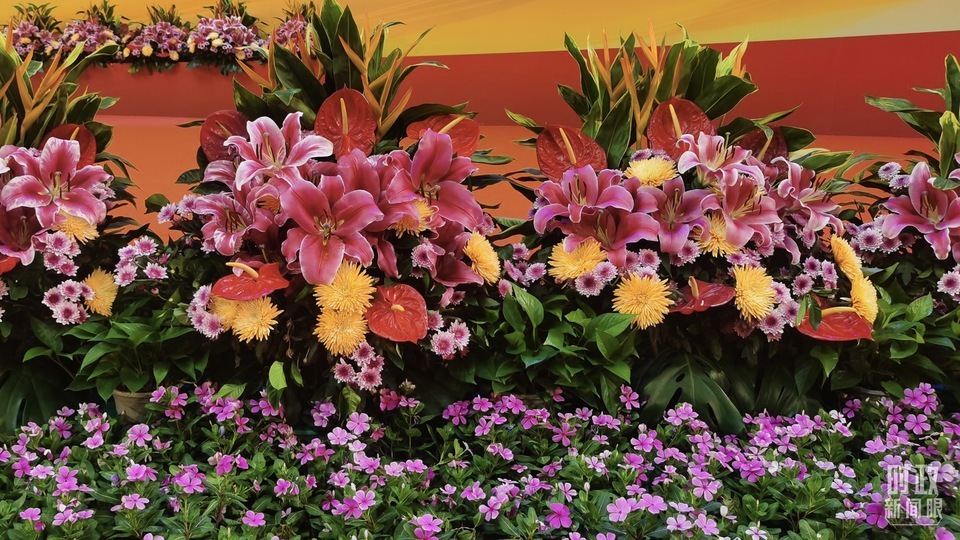 慶祝大會現(xiàn)場擺放的鮮花。(總臺央視記者范凱拍攝)