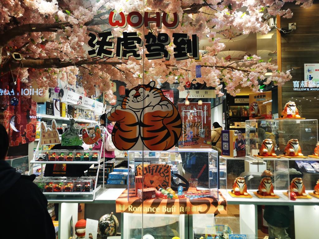 深受年輕人喜歡的國(guó)潮、文創(chuàng)、盲盒等產(chǎn)品也紛紛蹭起虎年熱度。在廣州聯(lián)合書(shū)店的文創(chuàng)區(qū),藝術(shù)家將老虎形象融入原創(chuàng)IP設(shè)計(jì),便攜麻將、解壓神器、虎頭擺件等占據(jù)櫥窗C位。廣州市民高小姐拿著一個(gè)虎頭挎包愛(ài)不釋手,她表示,春節(jié)期間很愿意買(mǎi)一些跟生肖有關(guān)的產(chǎn)品,“現(xiàn)在的生肖產(chǎn)品都既有設(shè)計(jì)又有創(chuàng)意,很貼合青年人喜歡的點(diǎn),所以看到喜歡的都愿意去買(mǎi)?!?/p>