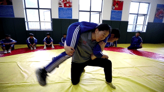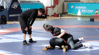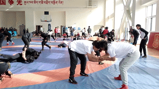 西洛卓瑪請(qǐng)教摔跤抱腿技術(shù)