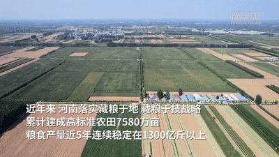 近年來,河南以新?lián)?dāng)新作為扛穩(wěn)糧食安全重任,累計建成高標(biāo)準(zhǔn)農(nóng)田7580萬畝,糧食產(chǎn)量近5年連續(xù)穩(wěn)定在1300億斤以上。