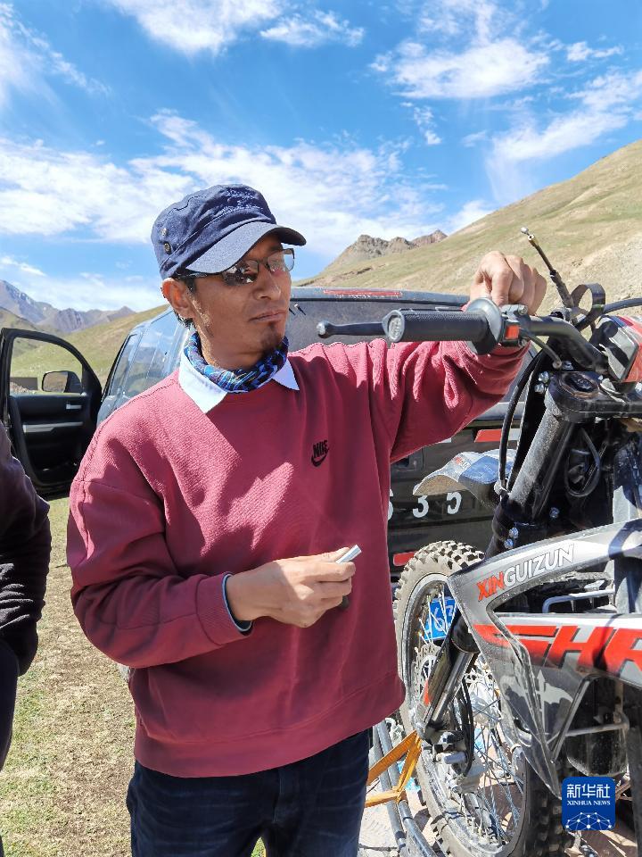 管護員強巴出發(fā)前調(diào)試巡邏用摩托車。(受訪者提供)