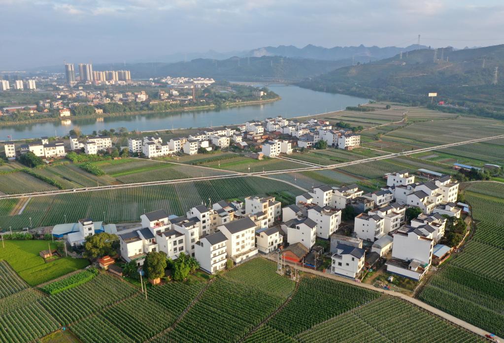 這是廣西百色市田東縣境內(nèi)的鄉(xiāng)村風貌(2021年11月4日攝,無人機照片)。新華社記者陸波岸攝