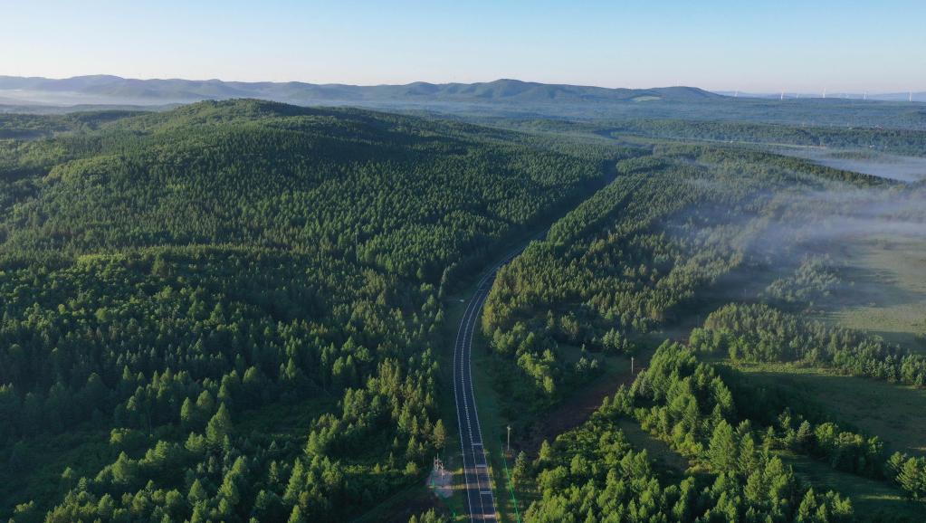 2021年6月27日拍攝的塞罕壩機械林場的夏日景色(無人機照片)。新華社記者楊世堯攝