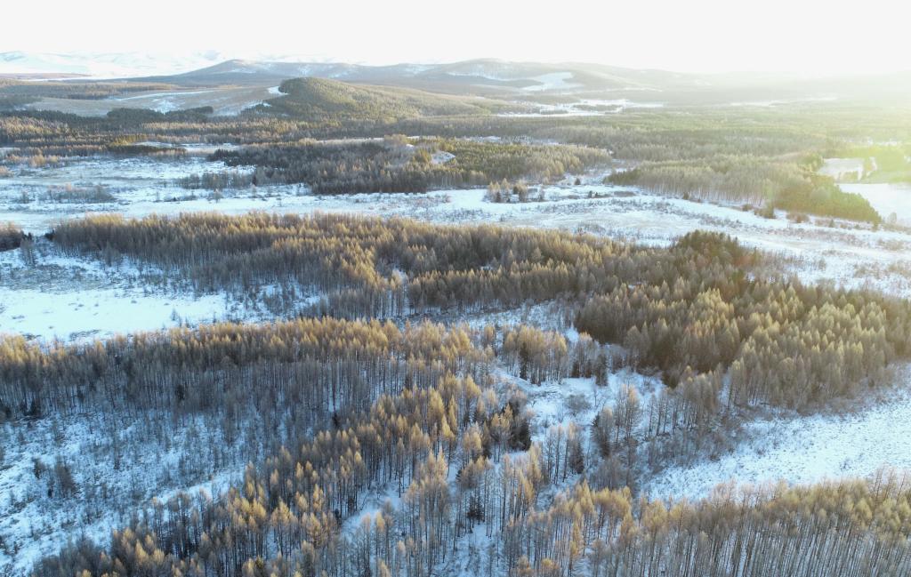 這是2022年3月1日拍攝的塞罕壩機械林場雪后的景色(無人機照片)。新華社記者楊世堯攝