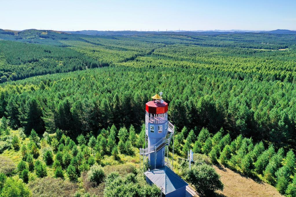 塞罕壩機械林場內(nèi)的望海樓(2021年8月23日攝,無人機照片)。新華社記者牟宇攝