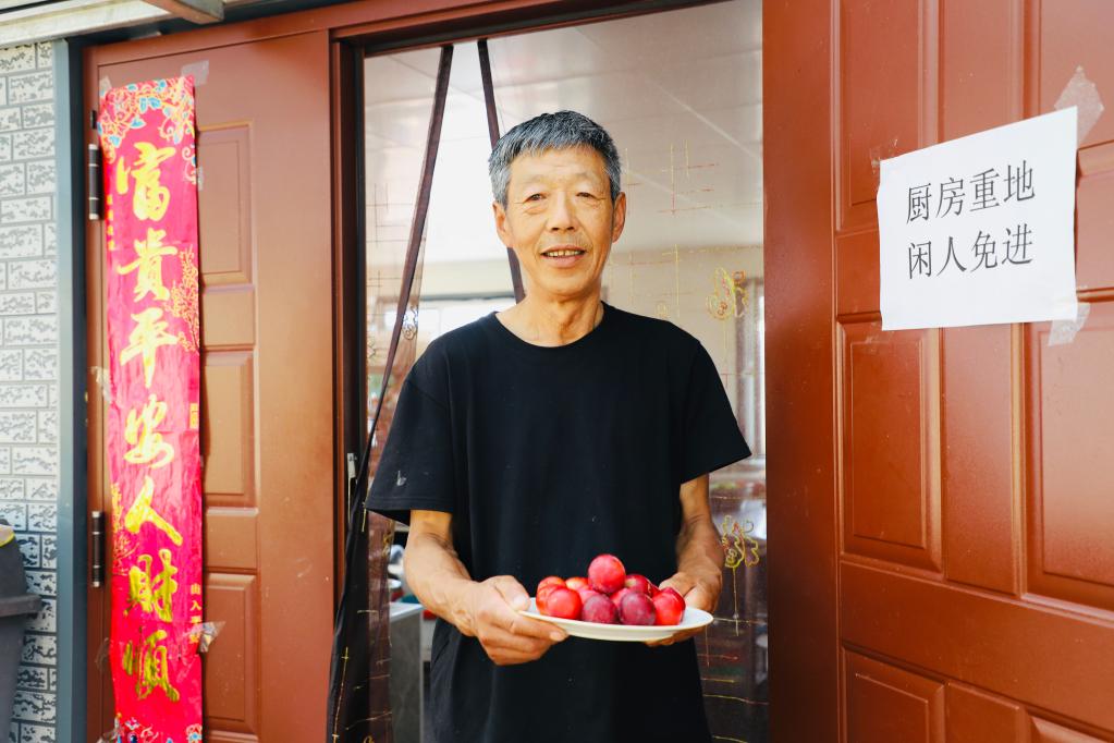 林場退休職工劉養(yǎng)順在農家樂招待客人(2021年7月22日攝)。新華社記者孫曉宇 攝