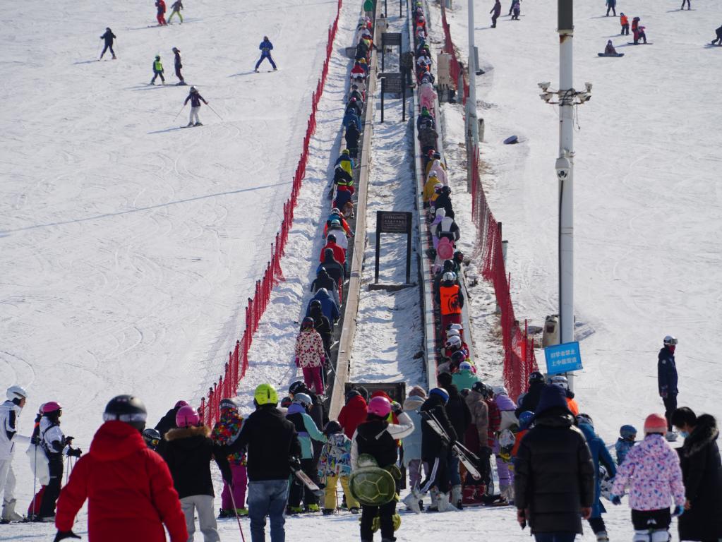 2022年2月17日,在沈陽(yáng)怪坡國(guó)際滑雪場(chǎng),非雙休日時(shí)游客也很多。新華社記者 崔師豪攝