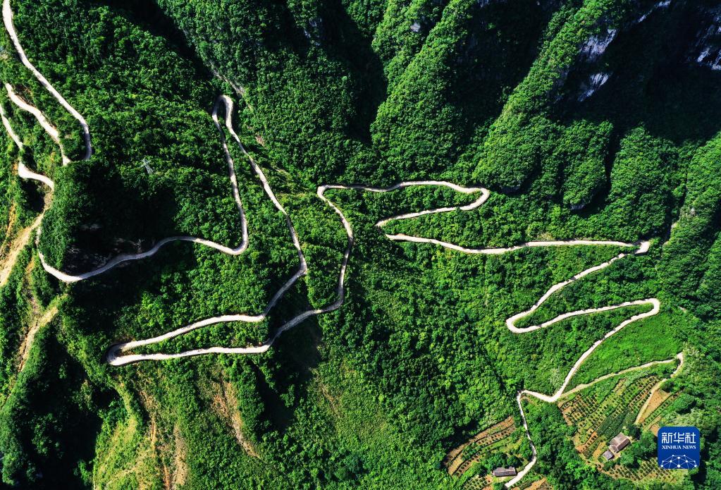 這是下莊村通往外界的公路(2020年7月3日攝,無人機照片)。新華社記者 王全超 攝