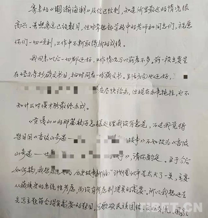 圖為上世紀80年代,陳老師的一封信(喜饒尼瑪提供)