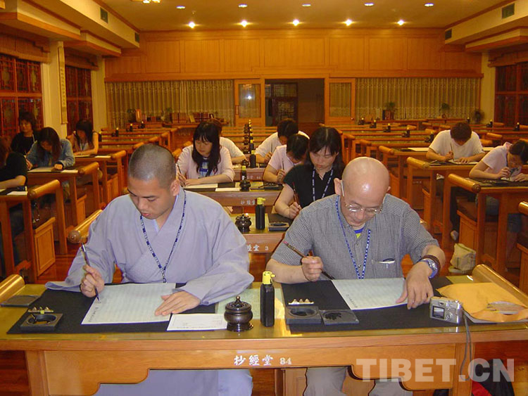 圖為2004年陳慶英先生在臺灣講學(xué)期間,于佛光山體驗抄經(jīng)