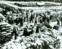進(jìn)藏部隊(duì)一面進(jìn)軍,一面筑路(圖為川藏公路的施工區(qū))