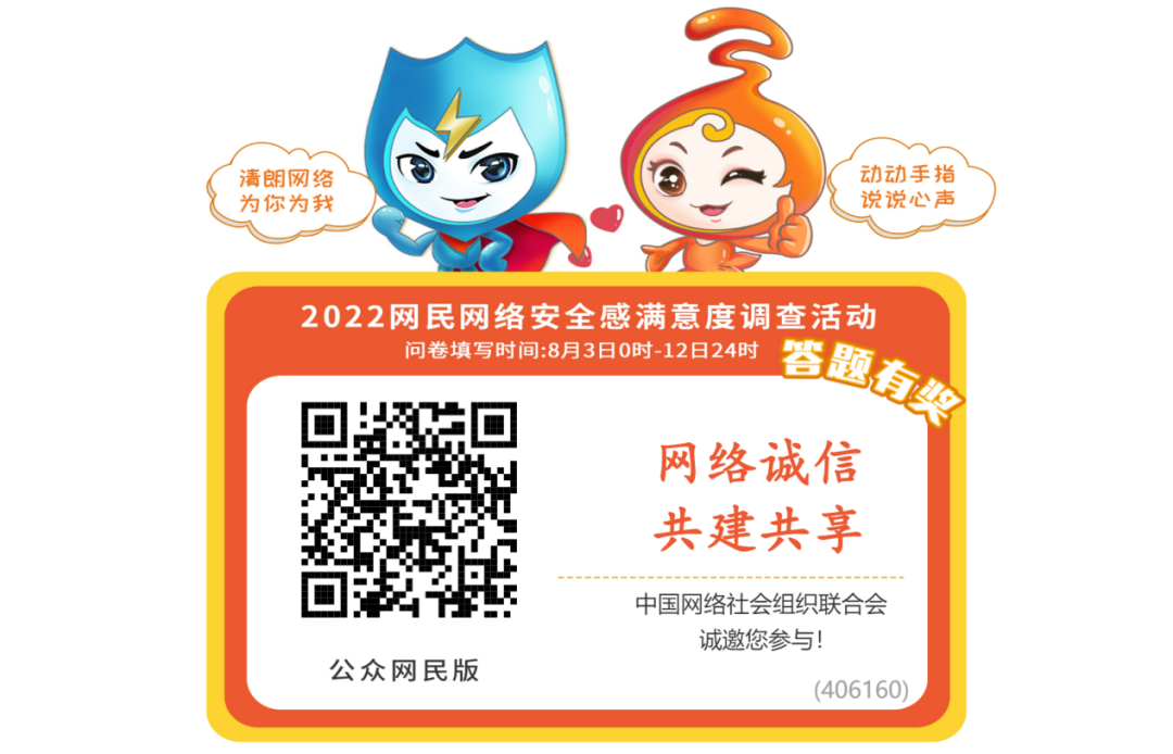 2022網(wǎng)民網(wǎng)絡(luò)安全感滿意度調(diào)查問卷今日正式上線(答題有獎!)