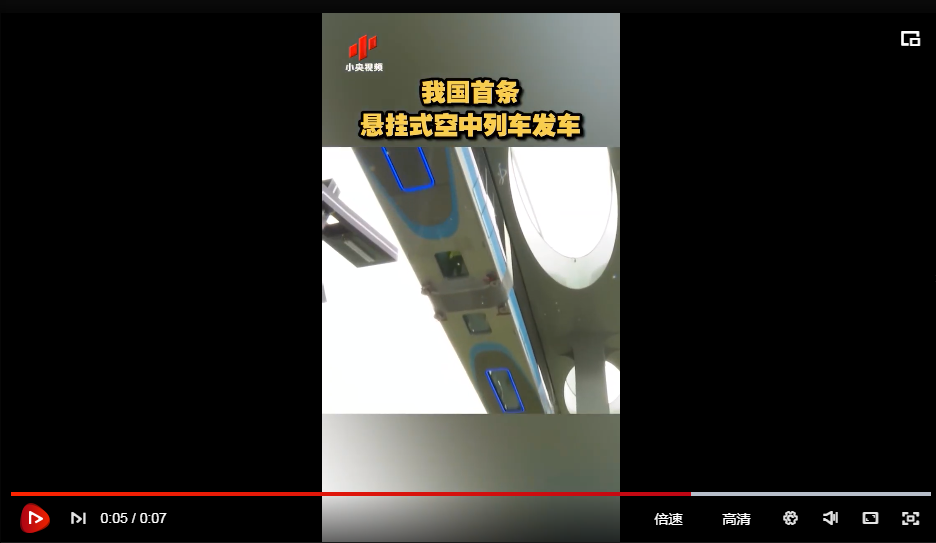 5月11日,湖北武漢,我國首條懸掛式空中列車試乘發(fā)車,它懸掛在單型軌道下方,有無人駕駛功能,最高運行時速60公里,預(yù)計今年內(nèi)開通運營。