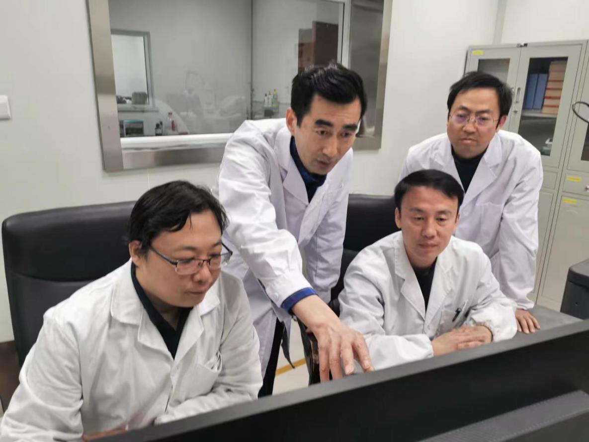 王東新(左二)正在和科研團(tuán)隊(duì)交流。圖片由本人提供