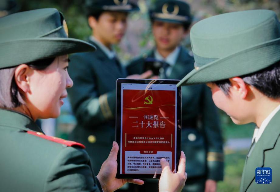 10月17日,武警重慶總隊執(zhí)勤第一支隊組織官兵學習黨的二十大報告。新華社發(fā)(唐志勇 攝)