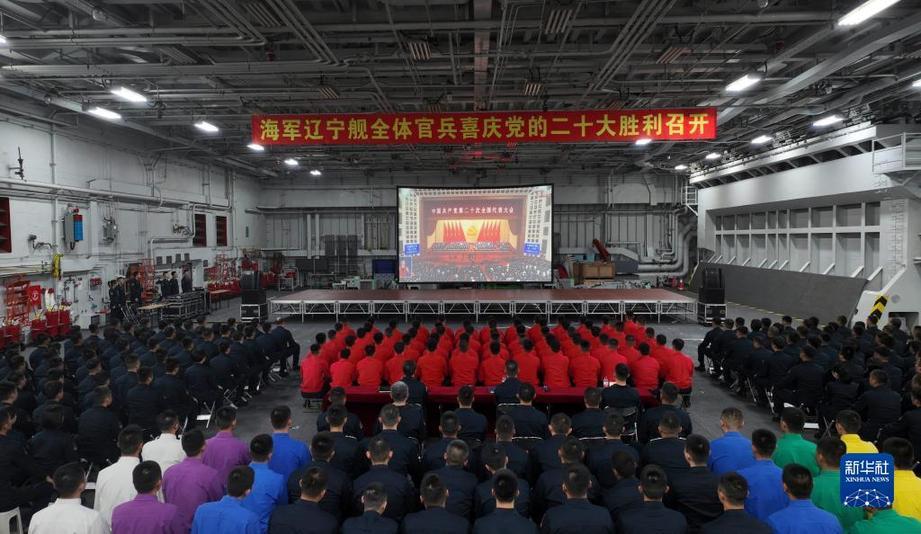 10月16日,遼寧艦全體官兵收看中國共產(chǎn)黨第二十次全國代表大會開幕會。新華社發(fā)(任澤霖 攝)