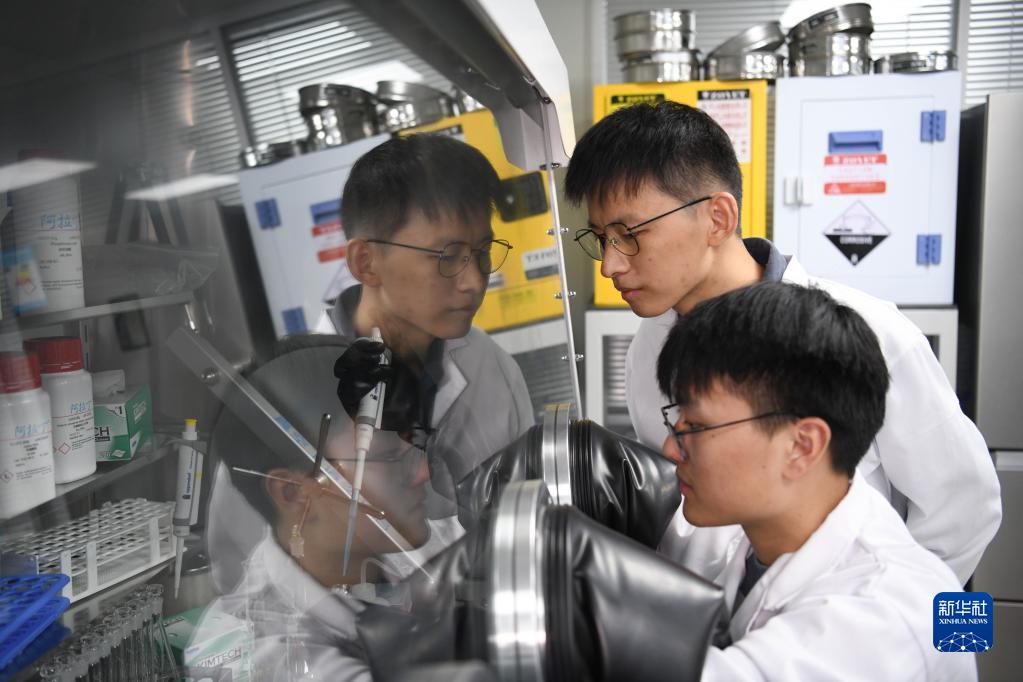 10月20日,廣東中山大學(xué)中山醫(yī)學(xué)院博士研究生張賢濤(右)在實驗室。新華社發(fā)