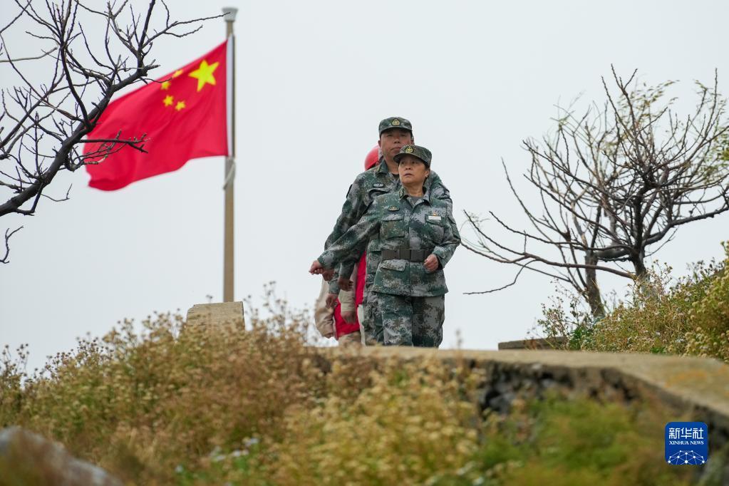 10月16日,在江蘇省連云港市灌云縣開(kāi)山島,王仕花(前)、輪值民兵和江蘇電力開(kāi)山島黨員服務(wù)隊(duì)隊(duì)員在島上巡邏。新華社記者 李博 攝