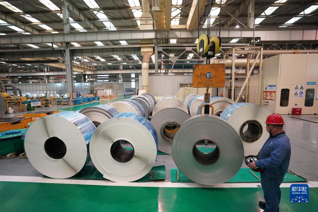 中國(guó)寶武山西太鋼不銹鋼精密帶鋼有限公司生產(chǎn)車(chē)間一角(10月16日攝)。新華社記者 詹彥 攝