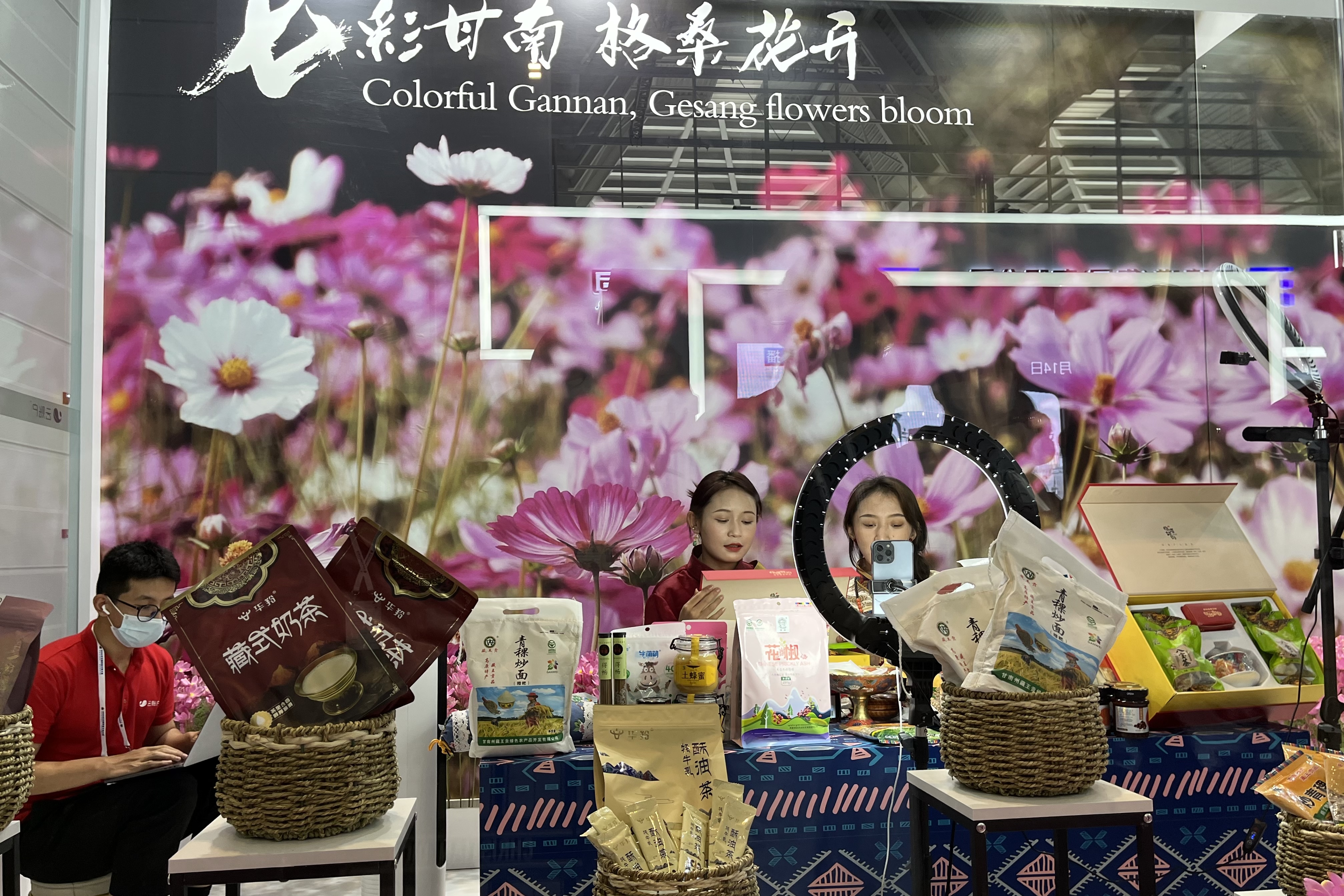 來(lái)自甘肅省甘南州的短視頻藝人正在直播。