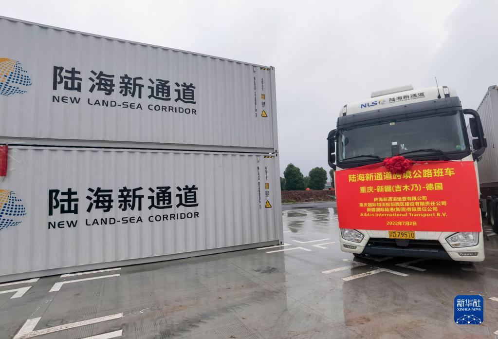 這是陸海新通道跨境公路班車(2022年7月2日攝)。新華社發(fā)(張?jiān)讫?攝)