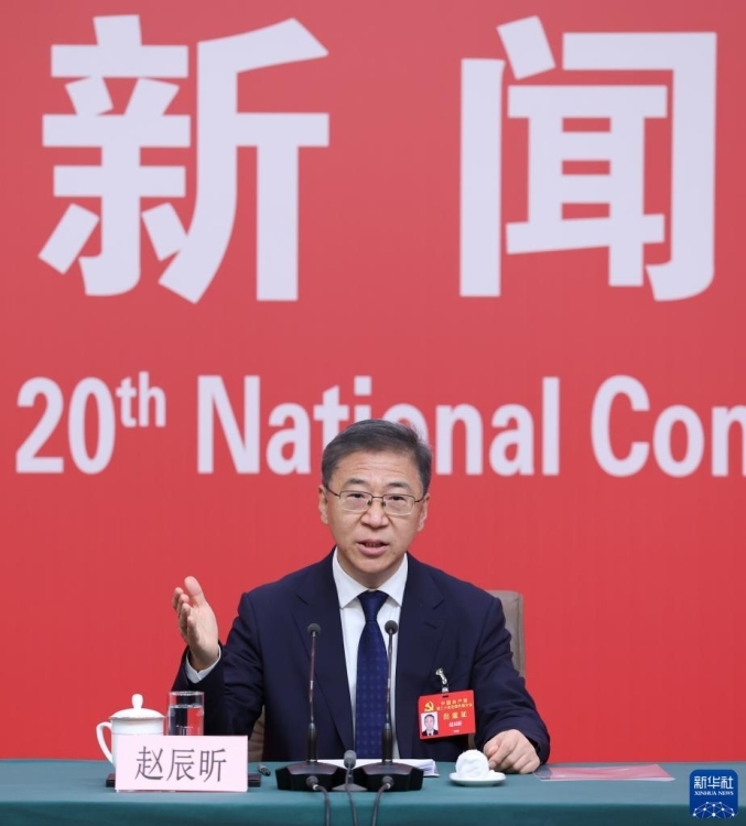 10月17日,中國共產(chǎn)黨第二十次全國代表大會(huì)新聞中心舉行記者招待會(huì),請(qǐng)國家發(fā)展和改革委員會(huì)黨組成員、副主任趙辰昕,國家發(fā)展和改革委員會(huì)黨組成員、國家糧食和物資儲(chǔ)備局黨組書記、局長叢亮,國家能源局黨組成員、副局長任京東介紹貫徹新發(fā)展理念、構(gòu)建新發(fā)展格局、推動(dòng)高質(zhì)量發(fā)展,以中國式現(xiàn)代化全面推進(jìn)中華民族偉大復(fù)興有關(guān)情況,并回答記者提問。這是趙辰昕在記者招待會(huì)上。新華社記者 陳建力 攝 圖片來源:新華網(wǎng)