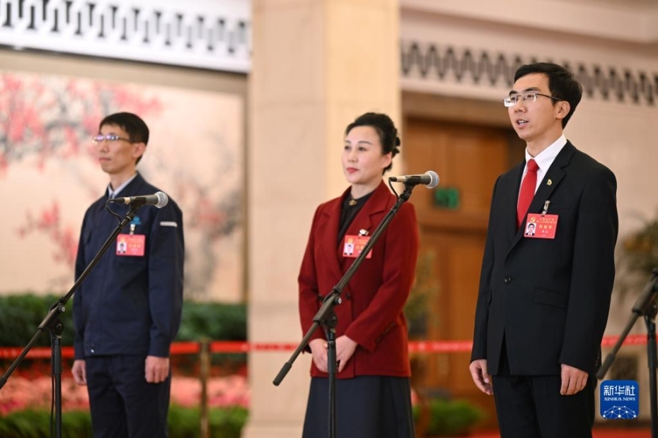 10月22日,中國共產(chǎn)黨第二十次全國代表大會(huì)閉幕會(huì)在北京人民大會(huì)堂舉行。這是閉幕會(huì)后,洪家光、楊浪浪、周雷代表(自左至右)接受采訪。新華社記者 金良快 攝 圖片來源:新華網(wǎng)