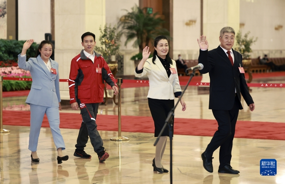 10月22日,中國共產(chǎn)黨第二十次全國代表大會(huì)閉幕會(huì)在北京人民大會(huì)堂舉行。這是閉幕會(huì)后,楊彥鋒、宋學(xué)文、祁洪芳、李紹杰代表(自左至右)步入“代表通道”,準(zhǔn)備接受采訪。新華社記者 邢廣利 攝 圖片來源:新華網(wǎng)