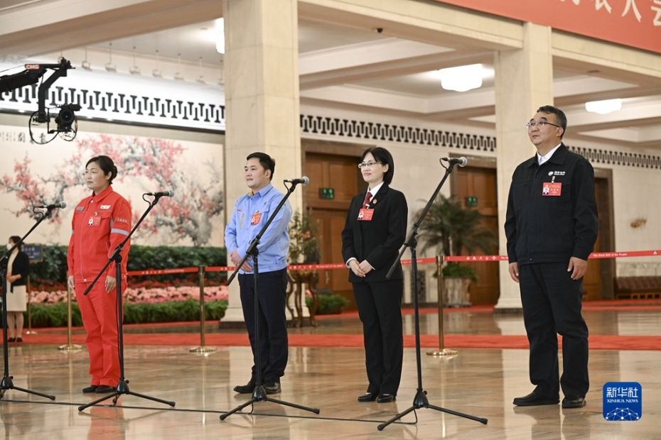 10月22日,中國共產(chǎn)黨第二十次全國代表大會(huì)閉幕會(huì)在北京人民大會(huì)堂舉行。這是閉幕會(huì)后,楊新泉、劉秀祥、石玉蓮、安長(zhǎng)明代表(自左至右)接受采訪。新華社記者 金良快 攝 圖片來源:新華網(wǎng)