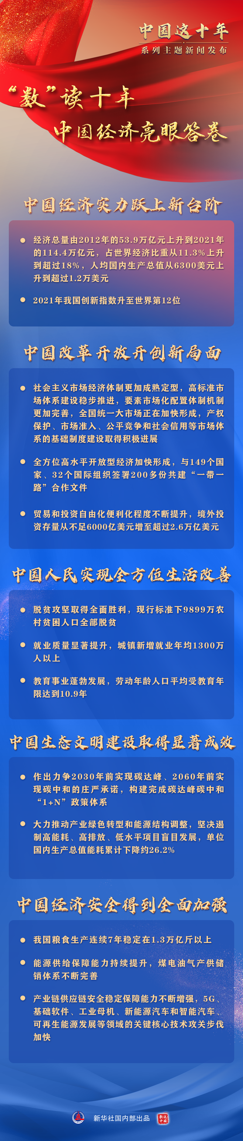 “回顧黨的十八大以來經(jīng)濟社會發(fā)展的光輝歷程,在習(xí)近平經(jīng)濟思想的指引下,我國正在加快邁向更高質(zhì)量、更有效率、更加公平、更可持續(xù)、更為安全的發(fā)展之路,我國的經(jīng)濟實力、科技實力、綜合國力、國際影響力持續(xù)增強,我們以實際行動交出了一份人民滿意、舉世矚目、可以載入史冊的中國答卷?!?/p>