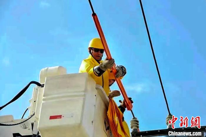 圖為扎西尼瑪進(jìn)行電力搶修作業(yè)?!∈茉L者供圖