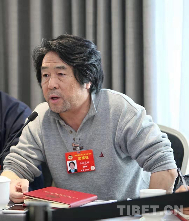 圖為第十四屆全國政協(xié)委員、西藏自治區(qū)政協(xié)副主席、自治區(qū)文聯(lián)主席扎西達娃