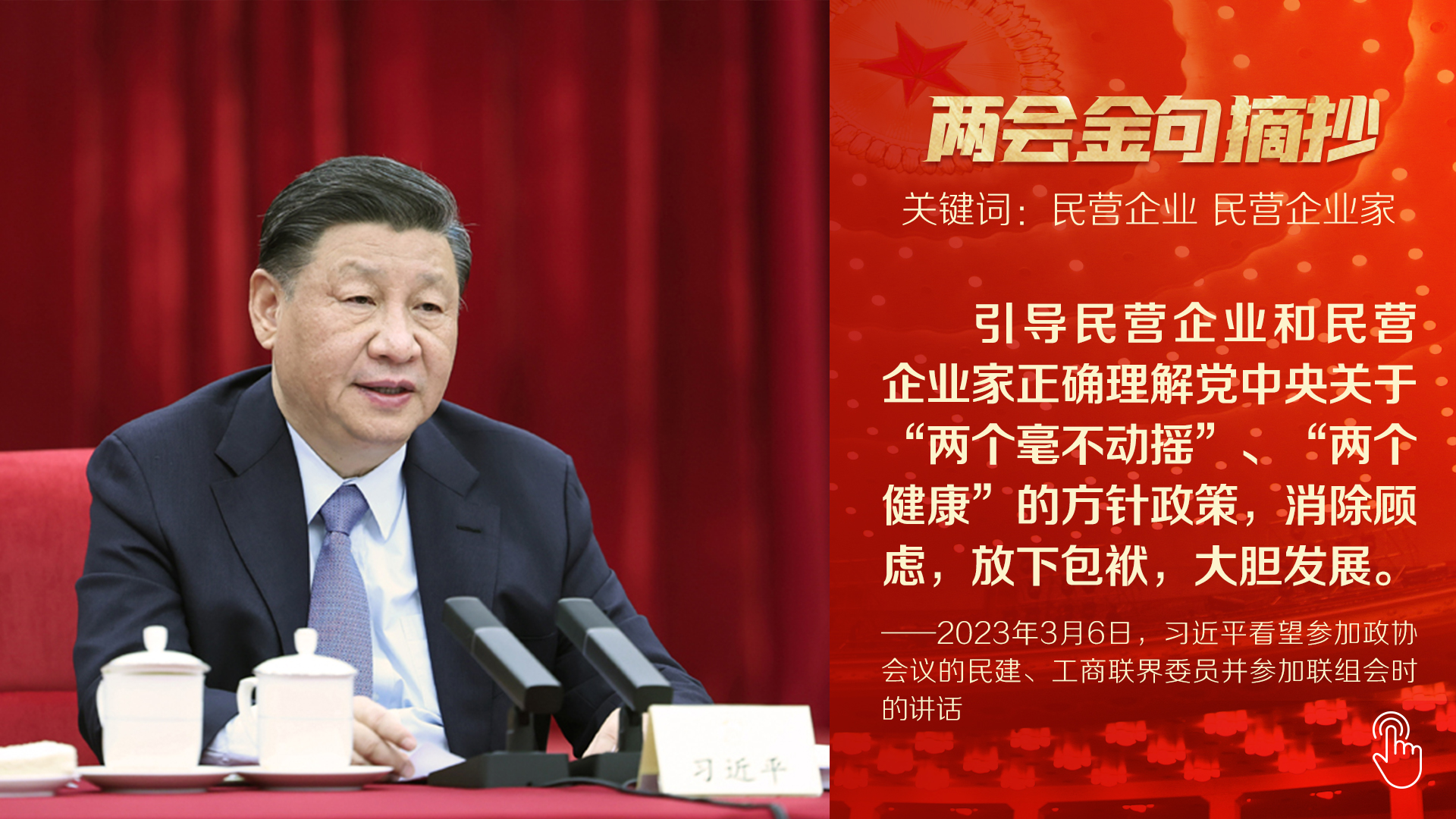 “高質(zhì)量發(fā)展是全面建設(shè)社會主義現(xiàn)代化國家的首要任務(wù)。”今年兩會首次到團(tuán)組,總書記以高質(zhì)量發(fā)展為題,詳細(xì)闡述中國未來施政發(fā)力點(diǎn)。第二天參加民建、工商聯(lián)界委員聯(lián)組會,他又就正確引導(dǎo)民營經(jīng)濟(jì)健康發(fā)展、高質(zhì)量發(fā)展作出重要論述,一句“要堅(jiān)守主業(yè)、做強(qiáng)實(shí)業(yè),自覺走高質(zhì)量發(fā)展路子”為全國4700多萬家民營企業(yè)指明方向。十四屆全國人大一次會議閉幕會上,總書記再次向世界宣示:在強(qiáng)國建設(shè)、民族復(fù)興的新征程,我們要堅(jiān)定不移推動高質(zhì)量發(fā)展。