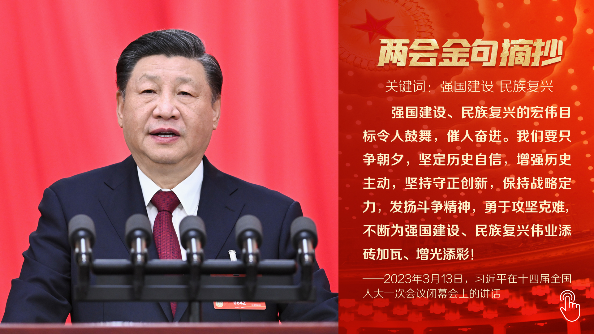 “在新征程上作出無負(fù)時代、無負(fù)歷史、無負(fù)人民的業(yè)績,為推進(jìn)強(qiáng)國建設(shè)、民族復(fù)興作出我們這一代人的應(yīng)有貢獻(xiàn)!”2023年全國兩會閉幕之際,習(xí)近平總書記發(fā)出的號召,澎湃人心,催人奮進(jìn)。