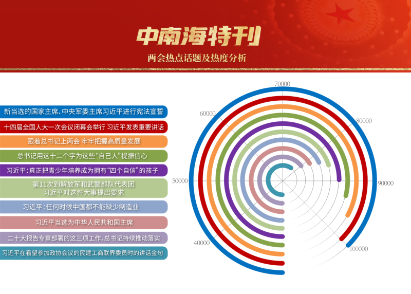 3月,世界目光,聚焦北京。近3000名中外記者采訪報道全國兩會。央視網(wǎng)“智聞”系統(tǒng)提取分析兩會期間全網(wǎng)時政新聞熱點(diǎn)顯示,習(xí)近平總書記的兩會關(guān)切吸引全網(wǎng)目光,新征程領(lǐng)路人的人民情懷成為網(wǎng)友“兩會印象”最深刻的主題之一。