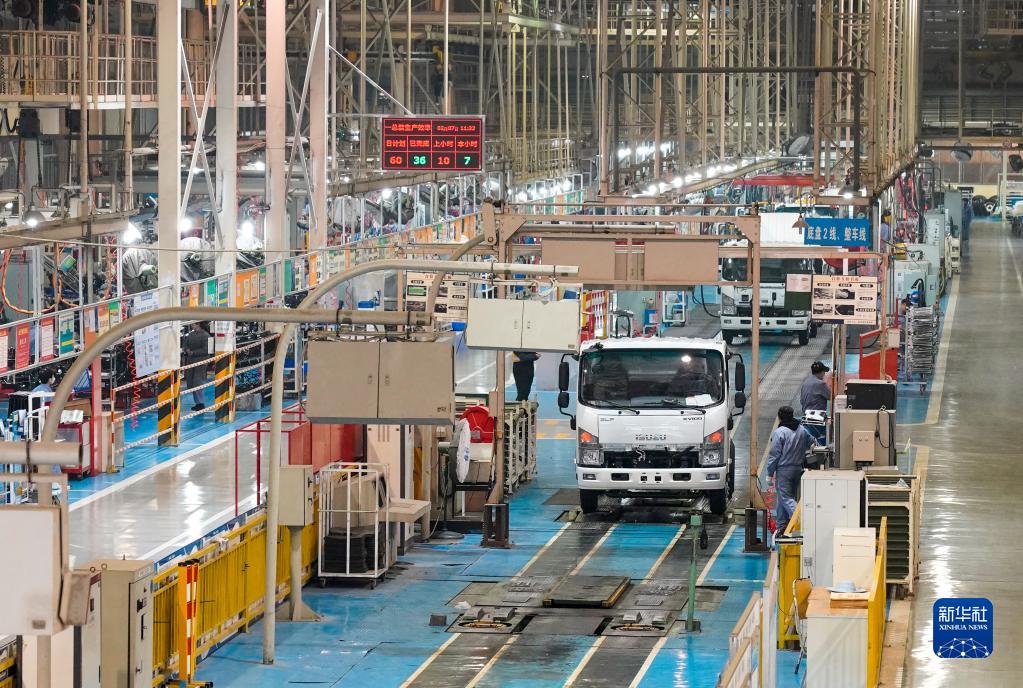 這是慶鈴汽車(集團(tuán))有限公司繁忙的商用車整車生產(chǎn)線(2023年2月7日攝)。新華社記者 劉潺 攝