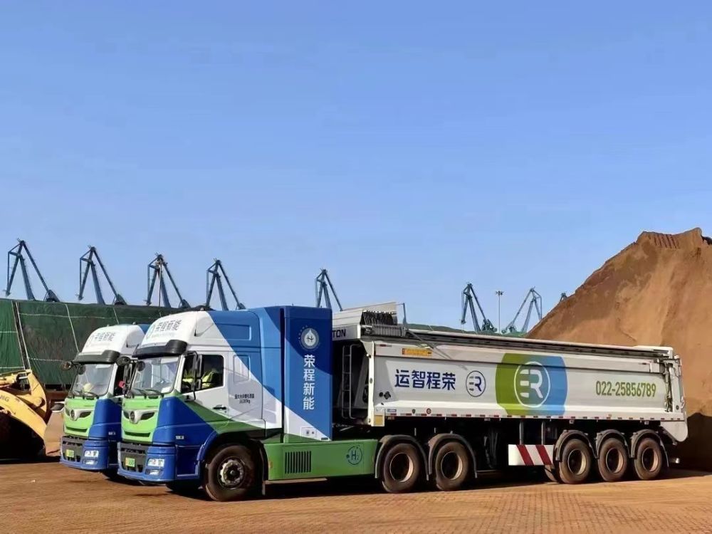 榮程集團(tuán)氫能重卡在天津港碼頭裝卸礦粉。(受訪(fǎng)者供圖)