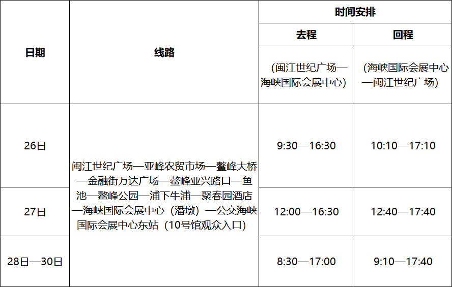 ?。?)可乘坐白湖亭——海峽國際會展中心區(qū)間專線,從白湖亭站出發(fā)直達海峽國際會展中心(1號館)。