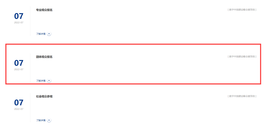 進入數(shù)字中國建設峰會官網(wǎng),點擊“觀眾報名”欄目,選擇“團體觀眾報名”。