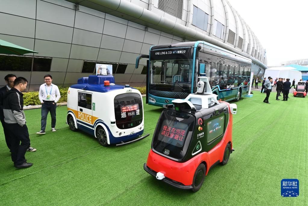4月26日在第六屆數(shù)字中國(guó)建設(shè)成果展覽會(huì)上拍攝的多種智慧車(chē)輛。新華社記者 林善傳 攝