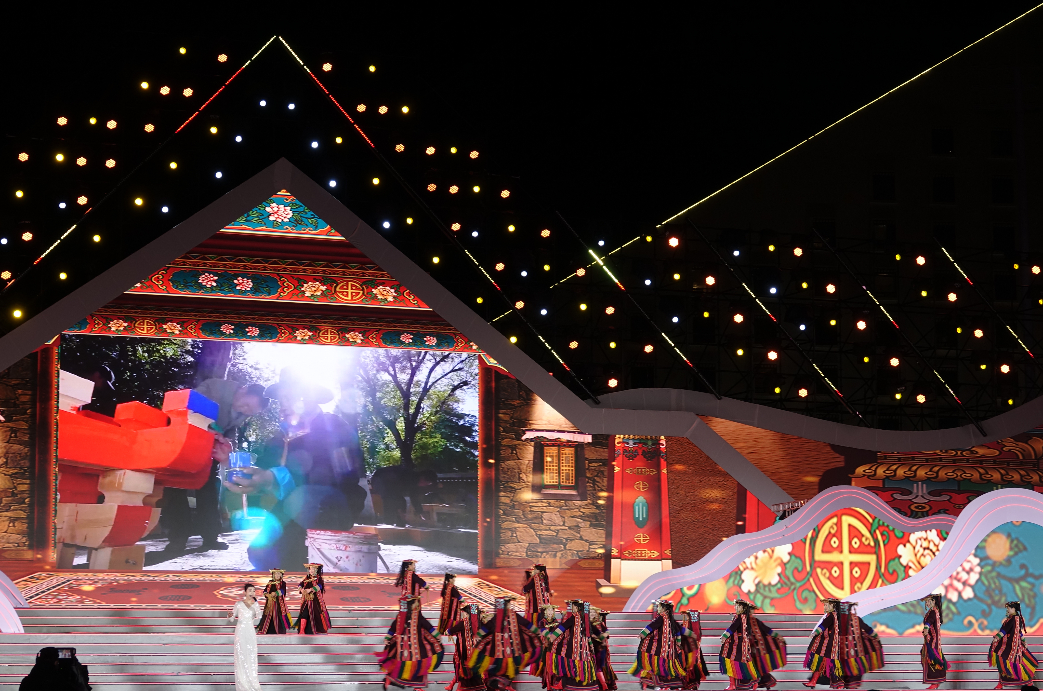 文藝演出《擁抱新西藏》在經(jīng)久不息的歡呼聲中開場。京劇《四郎探母》、藏戲《扎西雪巴》、粵劇《文成公主》選段,三種戲曲藝術(shù)跨界融合表演,充分展現(xiàn)了中華優(yōu)秀傳統(tǒng)文化的魅力,在文化的交融中飽含各族兒女對祖國母親的熱愛和眷戀之情。情景歌舞《我來了,西藏》《金色家園》《呀啦嗦》《幸福踏歌》等精彩節(jié)目,生動展現(xiàn)了新時(shí)代十年西藏各項(xiàng)事業(yè)取得的全方位進(jìn)步、歷史性成就;《牽夢西藏》《心手相連》《云端上的納木措》《藍(lán)天下的祝?!贰稅傄麸w揚(yáng)》《飲酒歌》,充分展示了西藏自然風(fēng)光之美、歷史人文之美、民族風(fēng)情之美、包容開放之美,再次向世界發(fā)出真誠邀約,歡迎四面八方的朋友親近西藏、感悟西藏。