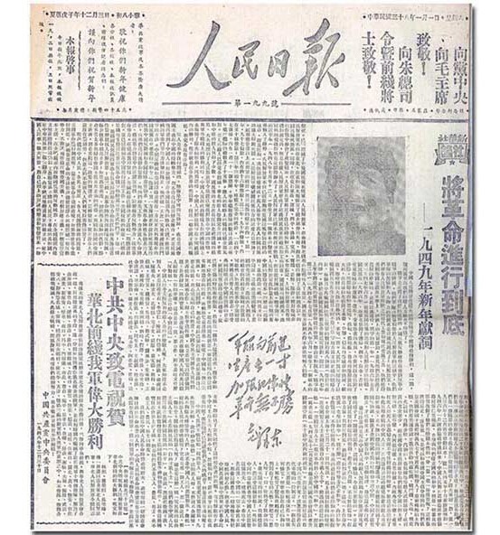 1948年12月30日,毛澤東在為新華社寫的《將革命進(jìn)行到底》的新年獻(xiàn)詞中明確提出,“中國人民將要在偉大的解放戰(zhàn)爭中獲得最后勝利”。毛澤東號召全國人民,各民主黨派,各人民團(tuán)體真誠合作,采取一致的步驟,粉碎美帝國主義和國民黨反動派的政治陰謀,“將革命進(jìn)行到底”。