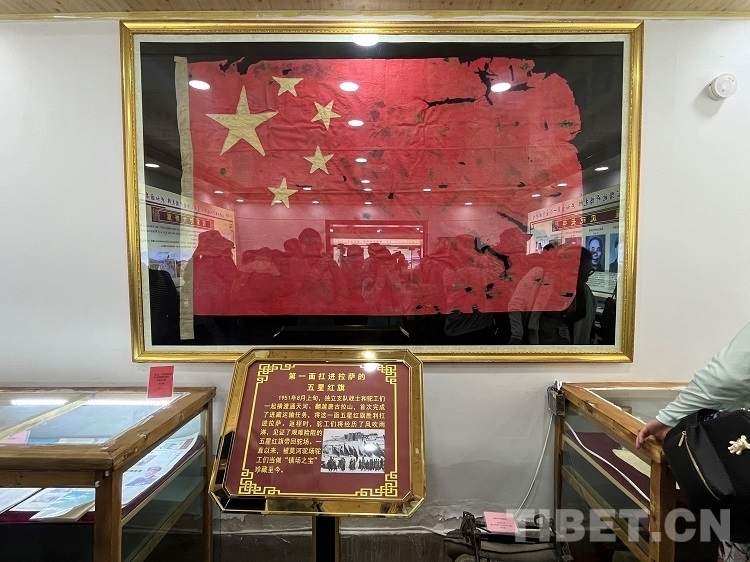 陳列館中的文物——第一面扛進拉薩的五星紅旗 攝影:張亞男