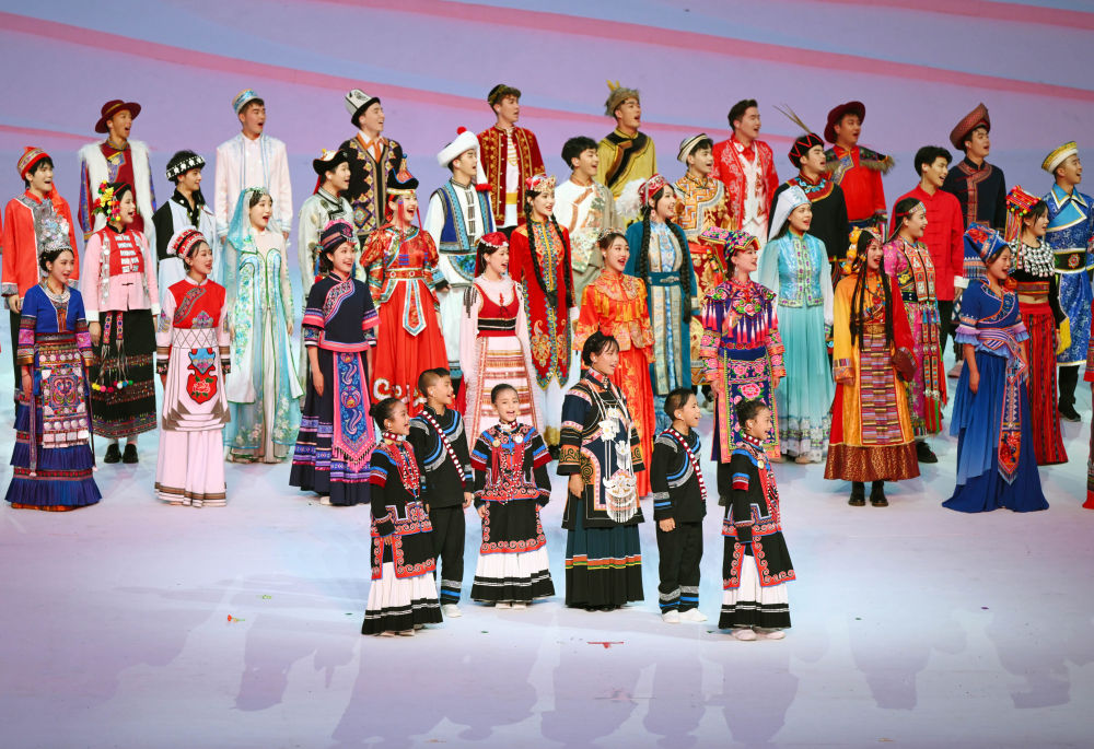 7月28日,吉好有果(中)在成都大運(yùn)會開幕式上歌唱。新華社記者 陳澤國 攝
