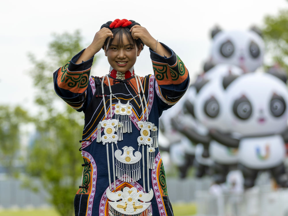 7月23日,準(zhǔn)備參加成都大運(yùn)會開幕式彩排的吉好有果。新華社記者 沈伯韓 攝