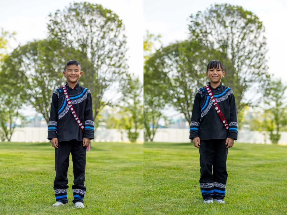 拼版照片:7月23日在成都大運(yùn)會開幕式彩排之前拍攝的馬杰英(左)、吉合拉作和俄地惹漢(右)。新華社記者沈伯韓 攝